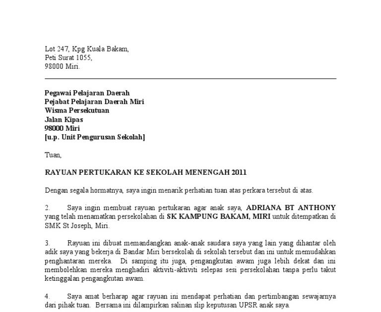Surat Rayuan Tukar Mrsm - Malacca A via malaccaa.blogspot.com